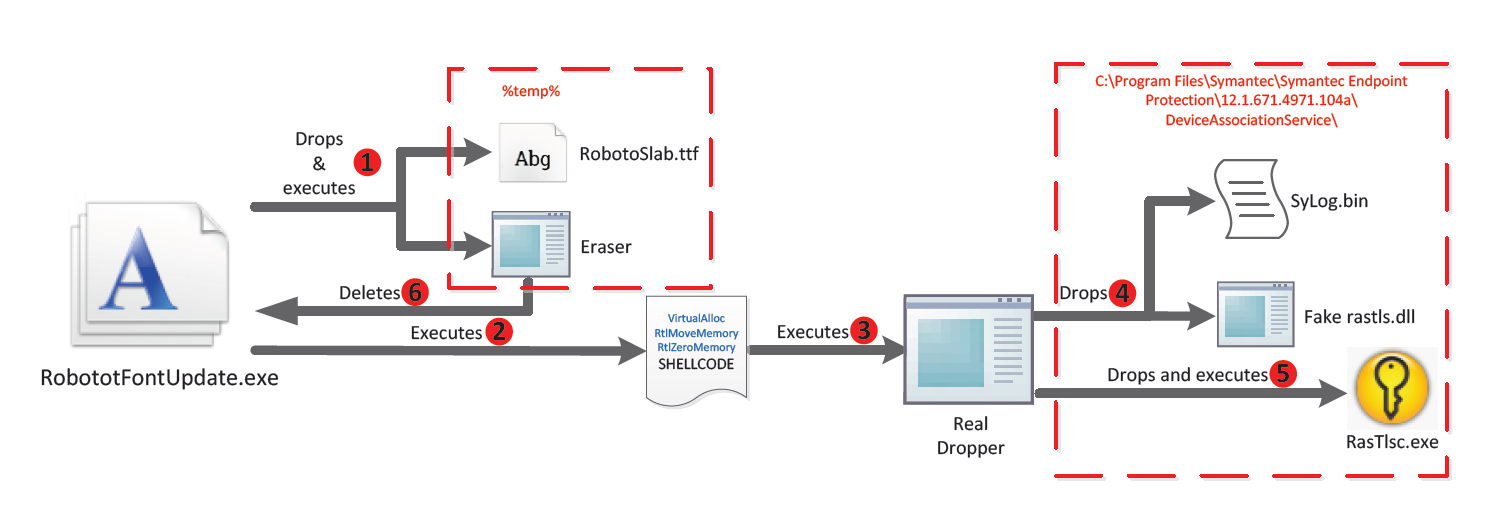 Sulama deliği tekniği muhtemelen Roboto Slab yazı tipi için sahte bir güncelleyici olan RobototFontUpdate.exe adındaki bir yerleştirici dağıtmak için kullanılmıştır ve aşağıdaki analizimizde özelliklerini bulabilirsiniz.