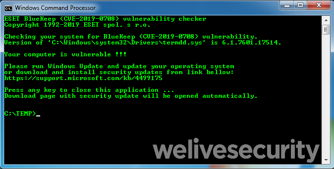 Program | ESET BlueKeep (CVE-2019-0708) Algılama Aracı |