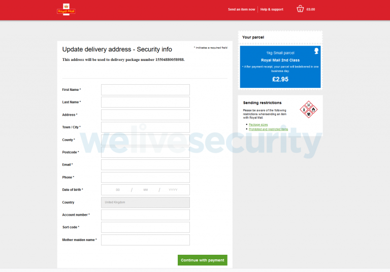 “Yeni teslimat tarihi belirle” bağlantısına tıkladığımda adım, adresim, doğrum tarihim, banka ayrıntılarım ve elbette annemin kızlık soyadı gibi kişisel bilgilerimi girmem istendi. (Royal Mail bu bilgileri neden istesin ki?)