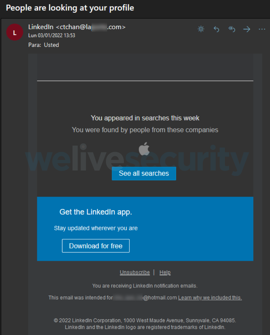 Siber suçlular da bu tür merak uyandıran ifadelerin farkında ve gelen kutularımıza düşen ve nihayetinde oturum açma kimlik bilgilerimizi çalmak veya cihazlarımıza kötü amaçlı yazılım indirmek üzere tasarlanmış bunlara benzer kimlik avı e-postalarında bu tür merak uyandıran ifadeler kullanıyor. Böyle sahte bir e-postadaki bağlantıya tıkladığımızda, oturum açma kimlik bilgilerimizi isteyen sahte bir LinkedIn açılış sayfasına yönlendiriliriz. Saniyeler sonra, farkında olmadan LinkedIn kullanıcı adımızı ve şifremizi vermenin yanı sıra aynı kimlik doğrulamasını kullandığımız diğer tüm hizmetlere erişim sağlanmasına da önayak oluruz.