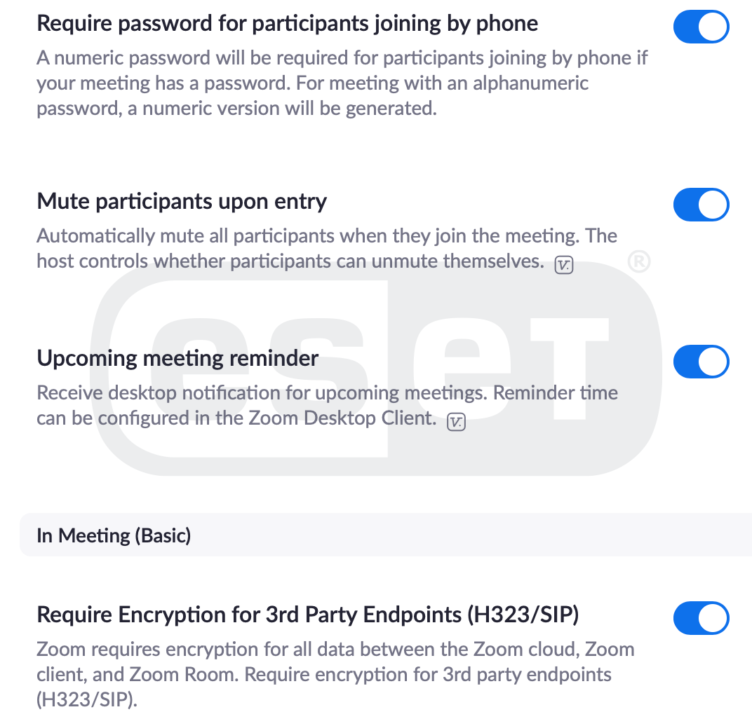 Bunu kapatmak, tek tıklama seçeneğini kaldırır ve parolanın toplantı bağlantısına gömülmesini engeller. Bu, her katılımcının toplantıya katılmak için parolayı girmesi gerektiği anlamına gelir. Yukarıdaki gibi toplantı oluşturma seçeneklerindeki ayarla birlikte ayarlayın.