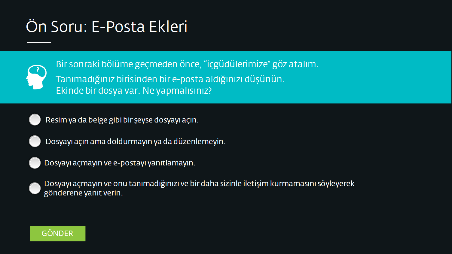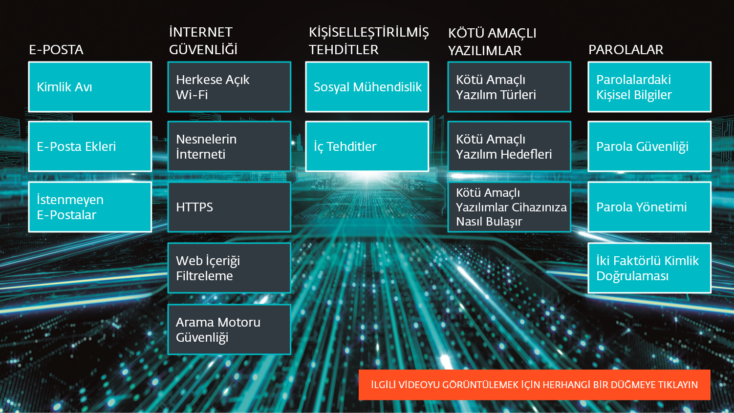 - 5 ana kategorideki 16 siber güvenlik konusu arasından seçim yapın