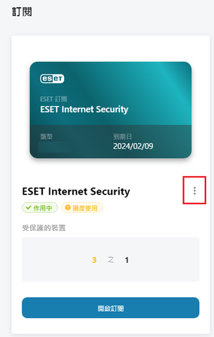 2. 如你的ESET Home 帳戶登入電郵與ESET啟動金鑰的登記電郵相同,當你成功登入ESET Home 帳戶後,便會看到你的訂閱。否則需要點擊「+新增訂閱」來加入並驗證啟動金鑰。