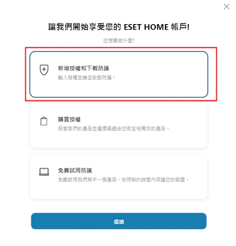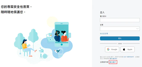 (如你沒有ESET Home 帳戶,可點擊「建立帳戶」來建立。