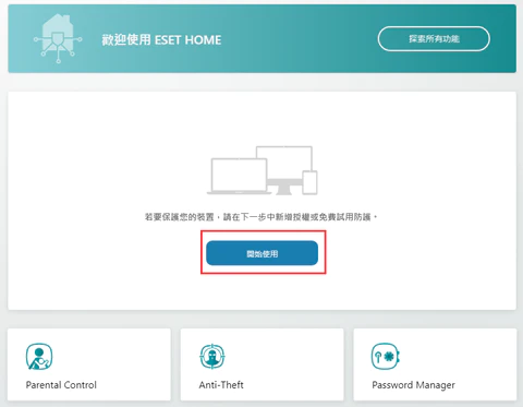 1. 請開啟瀏覽器,輸入https://home.eset.com/ 來登入到ESET Home帳戶