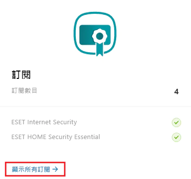 3. 如你之前ESET Home內已有授權,請點擊「訂閱」>「顯示所有訂閱」> 「+新增訂閱」,然後跳到步驟5.