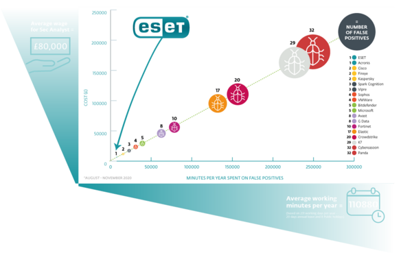 False positives lead to greater costs for clients, end users and reduced security efficacy. A security analyst’s time can be expensive, and that’s time which could be spent on true positives to mitigate the risk of damaging persistent malware.