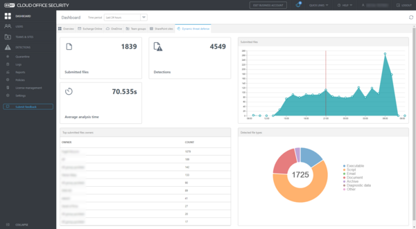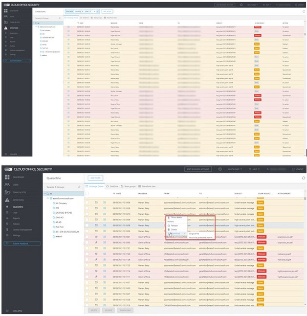 Every file that is uploaded to OneDrive, shared via SharePoint or transferred via Teams is checked using our powerful malware detection engine, which leverages the same technology as ESET’s endpoint solutions. If the engine detects a dangerous file, it is placed in quarantine, where it is accessible only by administrators; the user remains protected.