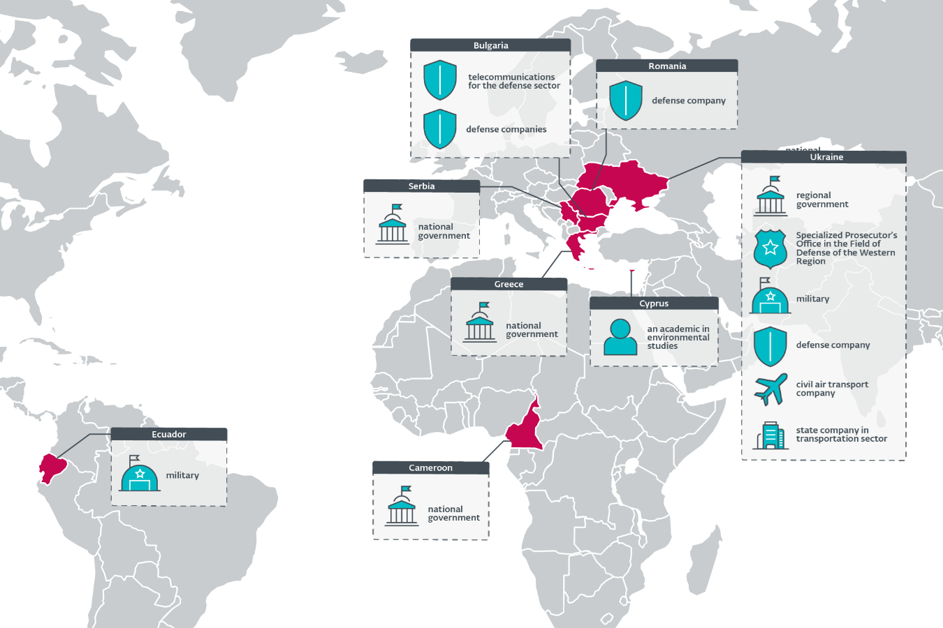 - Most victims are governmental entities and defense companies in Eastern Europe, although ESET has observed governments in Africa, Europe, and South America being targeted as well.