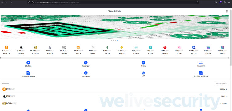 Pie de imagen: Sitio falso que simula ser una web para operar en criptomonedas.