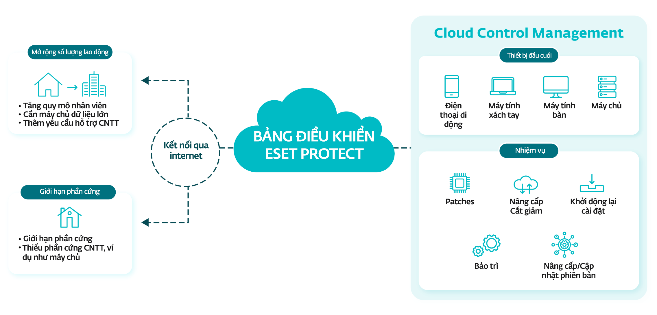 - ESET PROTECT Cloud hoạt động trong môi trường ảo và không yêu cầu phần cứng vật lý như máy chủ.