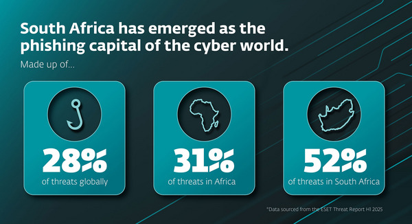 While phishing accounts for 28% of threats globally and 31% of threats in Africa, South Africa faces an outsized crisis. 52% of all detected threats in the country are phishing-related, earning it the title of “phishing capital of the cyber world.” This makes phishing nearly twice as prevalent in South Africa as in the rest of the continent.